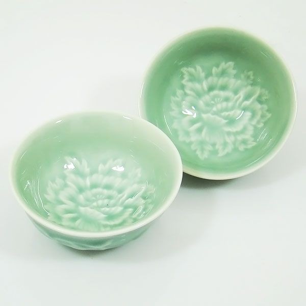 醉茶牡丹饮杯组是以久负盛名的潮州灰瓷烧制而成。施浮雕工艺于杯身,让缠枝的牡丹有着起伏变化的层次感,给人扑面而来的视觉冲击更争加触摸时的手 感。刷深浅不一的豆青釉,色泽莹雅,有如散发着富贵雅典之气的牡丹仙子。沏一杯清茶,杯中风姿卓约的牡丹增添了茶汤的美感,故花因茶水活,茶因花而香,两 者相映成趣,有花开富贵之美意。持杯犹如持花般轻盈而不费力,是一组精巧佳作。